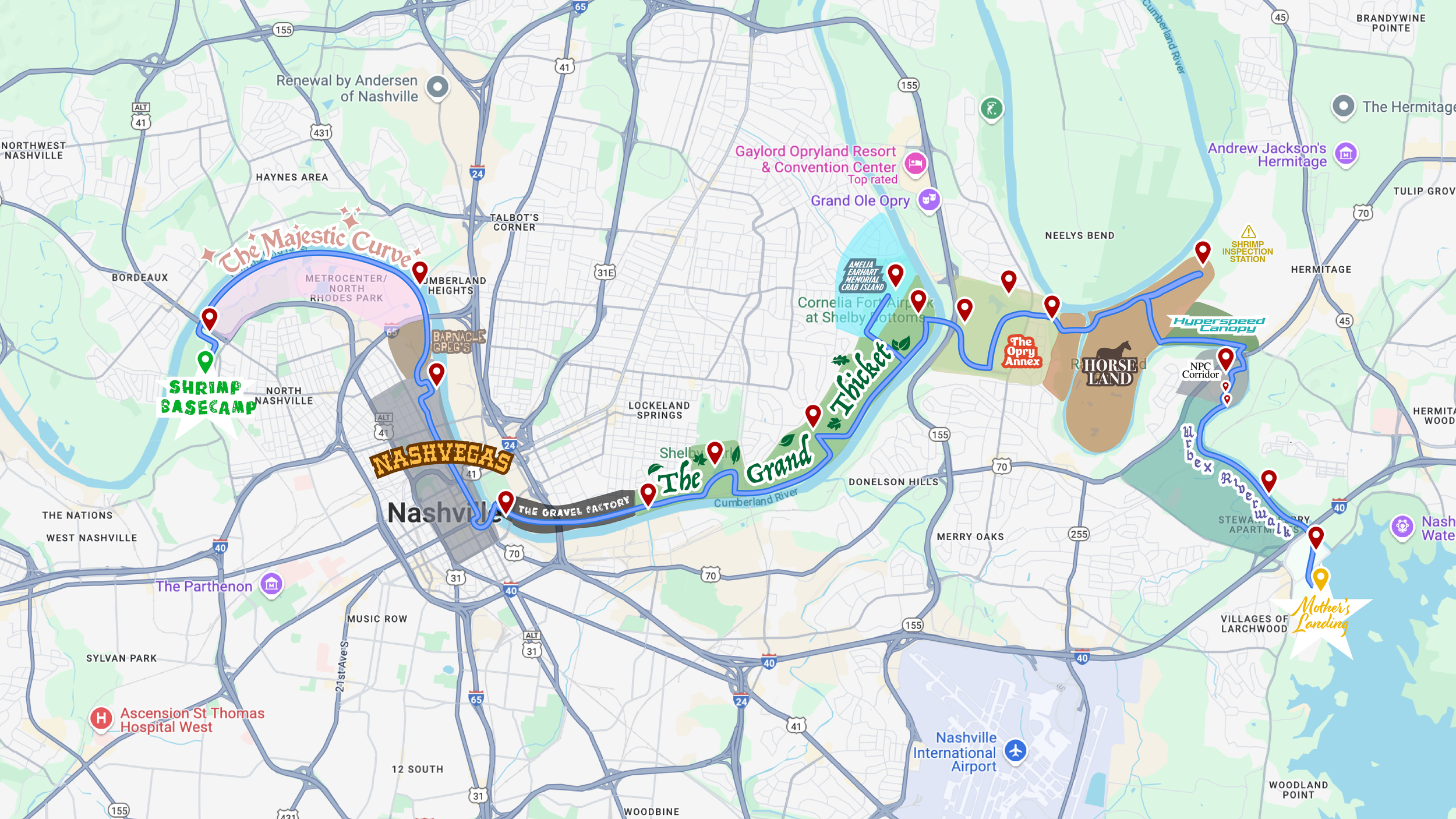 First team to bike all 25 miles of the Nashville Greenway, complete the 17-step treasure hunt, eat 2 pounds of seafood boil and drink a six pack, wins.